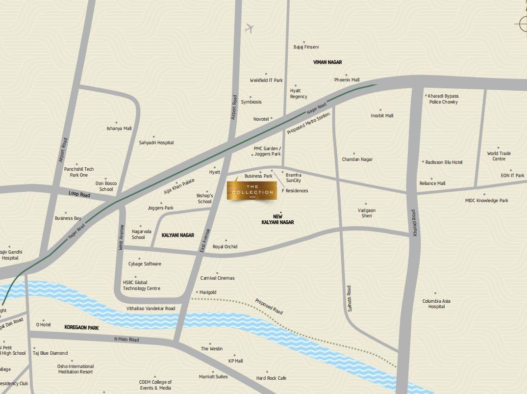 New Kalyani Nagar, the crown jewel of the city's eastern suburbs, sits alongside the elite neighborhoods of Koregaon Park and Viman Nagar. For those who thrive on glamour, it's the ultimate destination. With the international airport, luxury hotels, and world-class malls just minutes away, residents at The Collection enjoy unparalleled convenience. From business hubs to top educational institutions and healthcare facilities, this exclusive locale caters to every need of the upper crust.